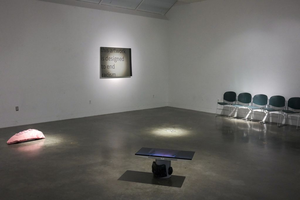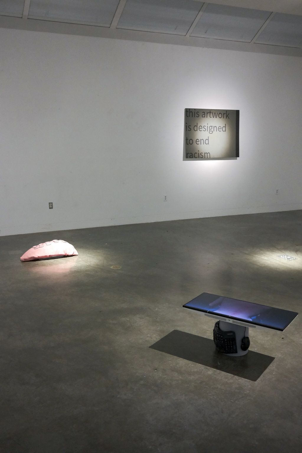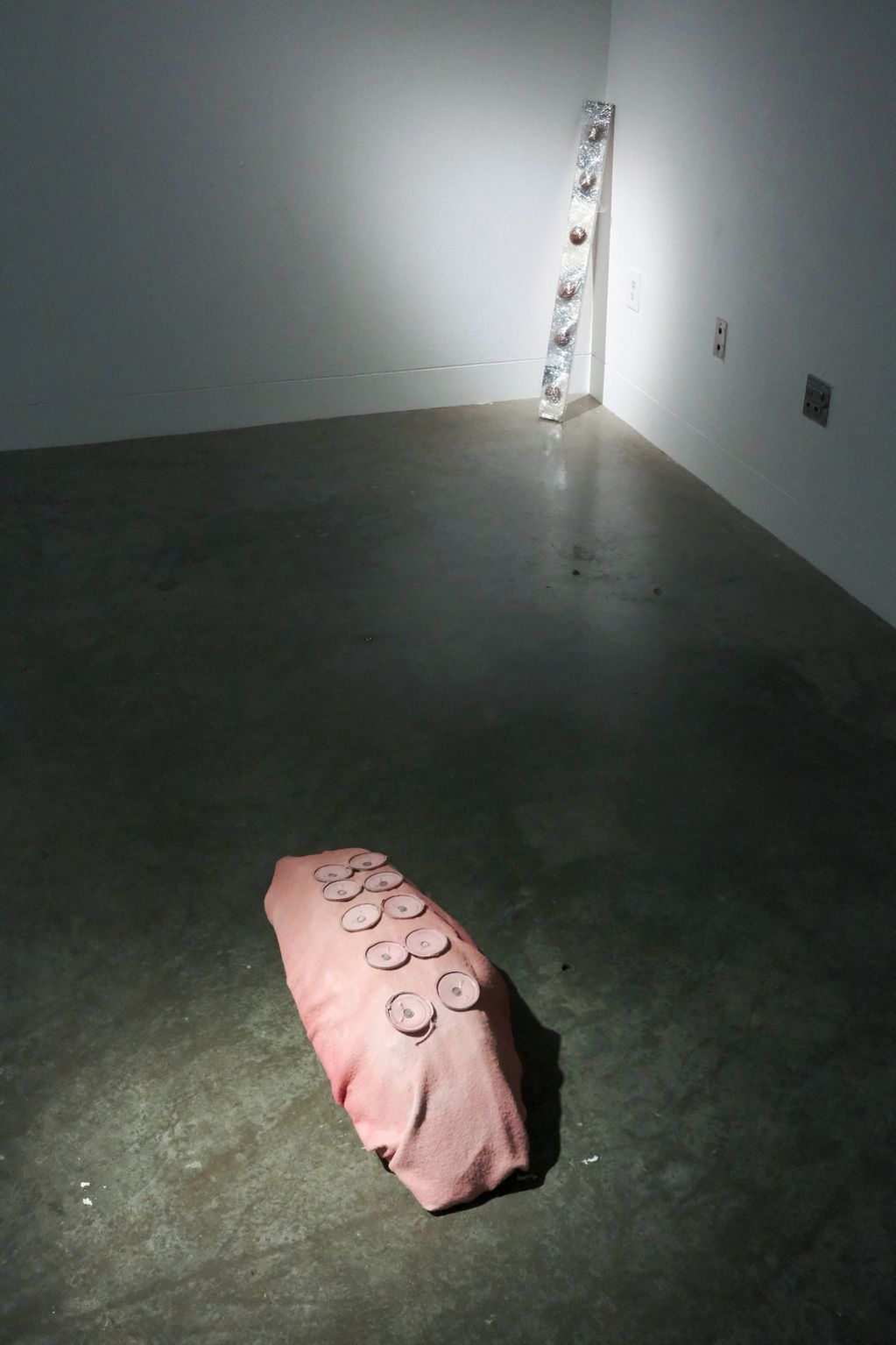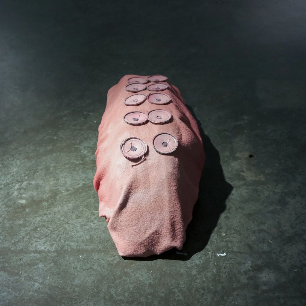 Fleece, speakers, acrylic paint, insulation foam, cardboard and hot glue.